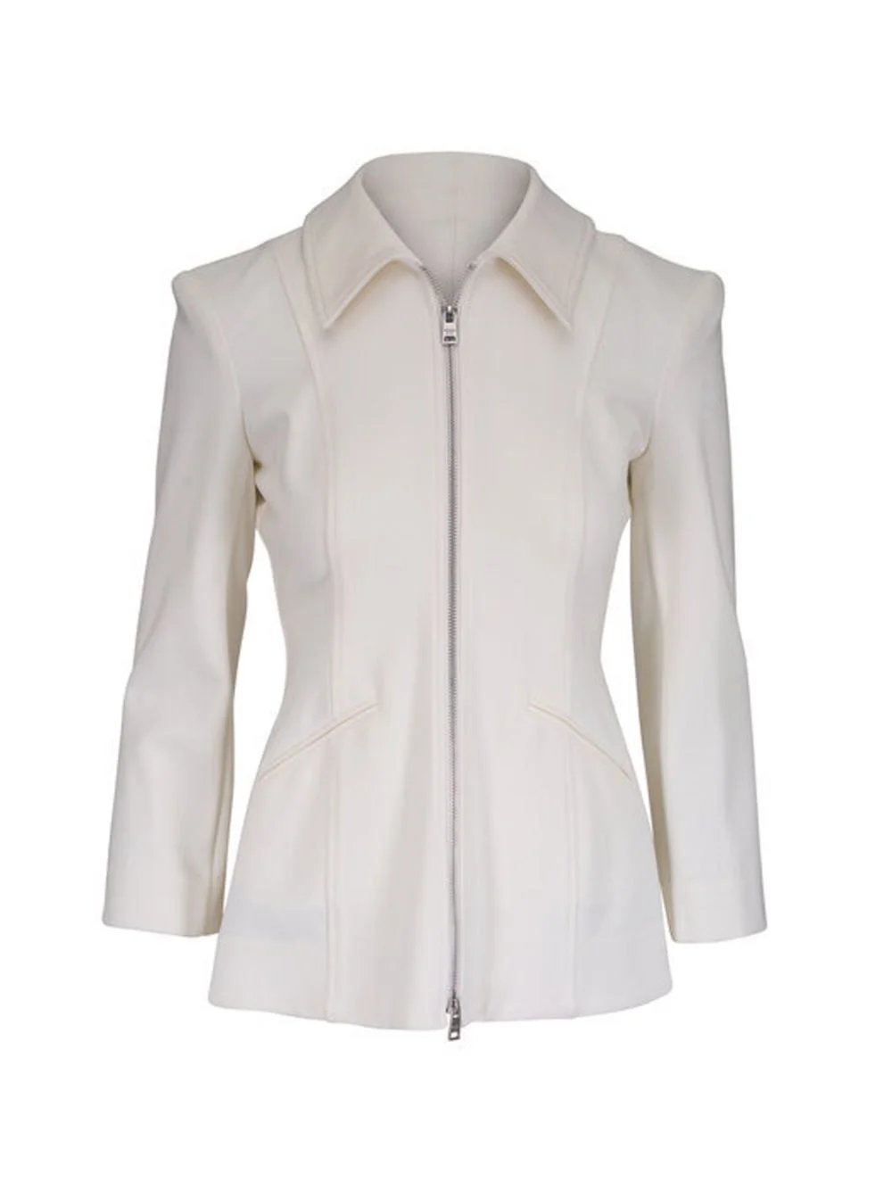 Willis zip fitted jacket Highlights - Off-white - Zip closure - Long sleeves - Shoulder pads - Panelled construction - Zipped cuffs Made in United States Composition Viscose 68%, Polyamide 28%, Spandex/Elastane 4% Washing instructions Read Manufacturer Guidelines