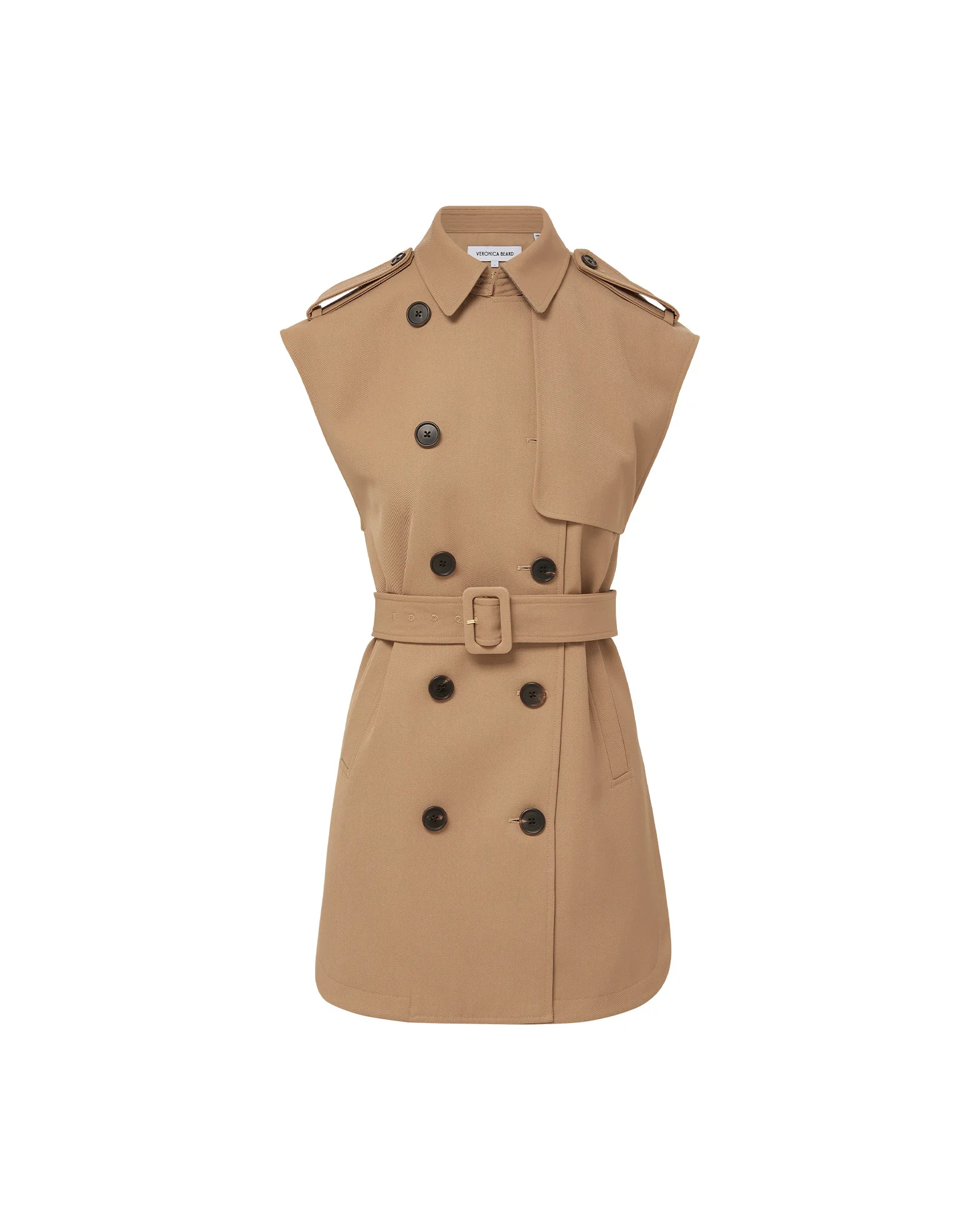 Product details The quintessential trench coat, reimagined as a vest. Expertly tailored in the USA from premium Turkish twill, the Willmott is an oversized utilitarian vest with all the classic trench details—epaulets, a storm flap, a single back vent—with contemporary touches, like widened shoulders and a notched lapel*need to confirm. Designed for year-round versatility, it layers effortlessly over everything from tank tops and tees to chunky knits. - 55% Polyester, 45% Virgin Wool - Lining: 100% Viscose - Made in the USA - Dry clean only - Style #2507OW11070363