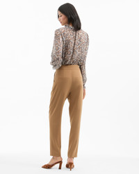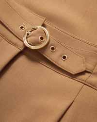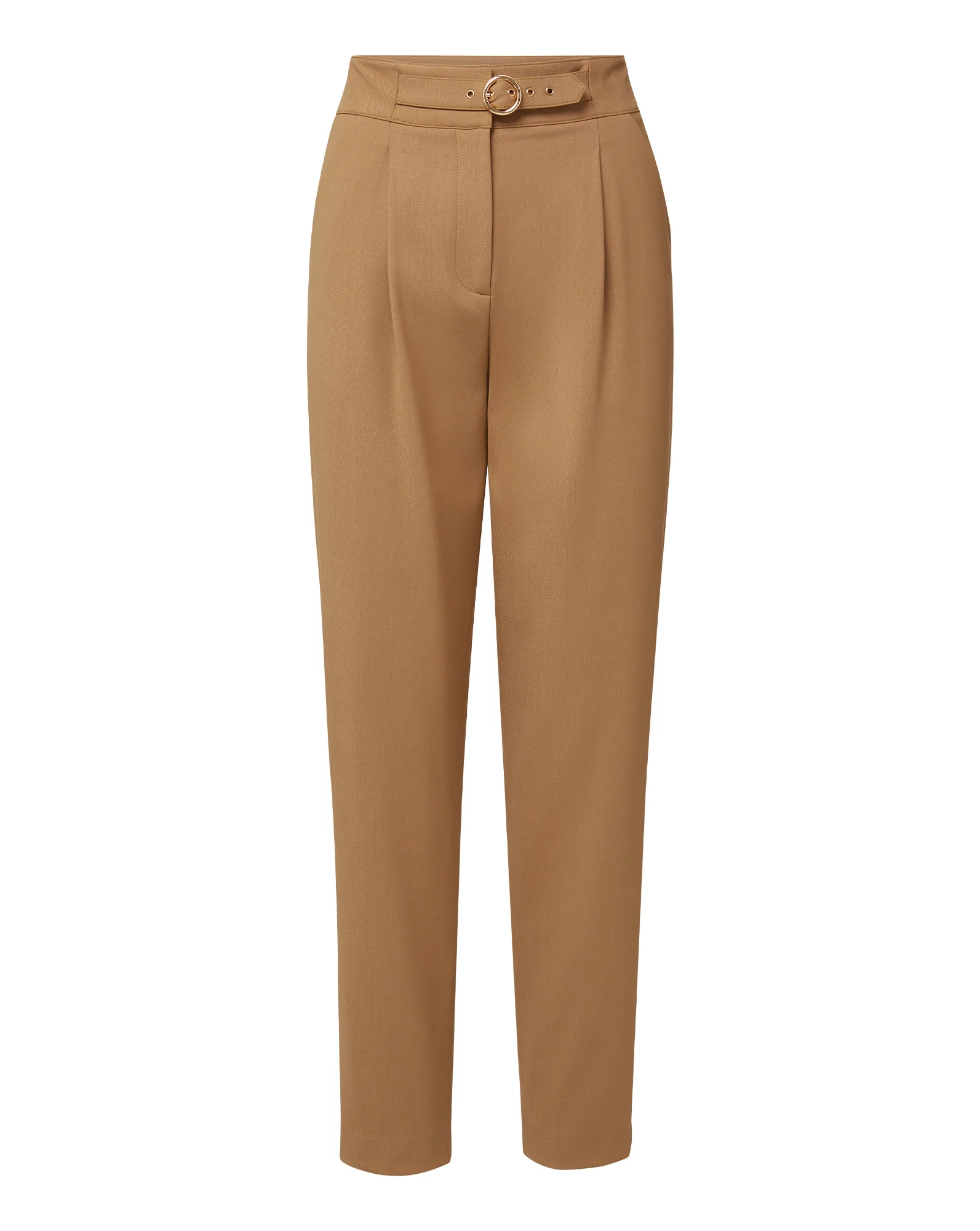 Product details Tailored polish meets everyday ease. Cut from premium stretch wool, the brown Wisteria pant features a relaxed yet high-waist, tapered silhouette with an adjustable belt detail. Designed to hit at the ankle, it's finished with classic touches: front pleats, side seam pockets, and back pockets. Pair with the coordinating Wilkie cropped jacket for a modern take on the power suit. - 53% Virgin Wool, 43% Polyester, 4% Lyocell - Unlined - Closure: Hidden front zip and a hook-and-bar closure - Dry clean only, with buttons covered - Style #2507SU8960741