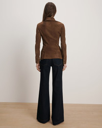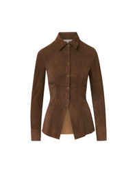 Product details A luxe take on the classic button down. Crafted in soft, buttery suede, the Wittaker shirt is cut for a slim, waist-defining fit and features a snap-front closure for ease. A cutaway hem with a raw edge completes the look. Pair with dark-wash denim to elevate the everyday, or style with the matching Gracie pant for a sleek, tonal set. - 100% Lambskin - Unlined - Professional leather cleaning only - Style #2509LT8541350