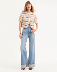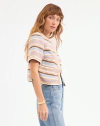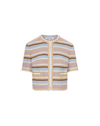 Product details Great on its own or as a layering piece, the Wyatt jacket is crafted from premium stretch cotton for a soft hand feel. Striped in sun-faded pastels, the top is cropped with extended short sleeves and hidden hook-and-bar closures. Wear with wide-leg pants for work, with jeans or shorts on the weekend. - 45% Cotton, 38% Polyester, 17% Viscose - Lining: 100% Polyester - Dry clean only - Style #2504ST1211047