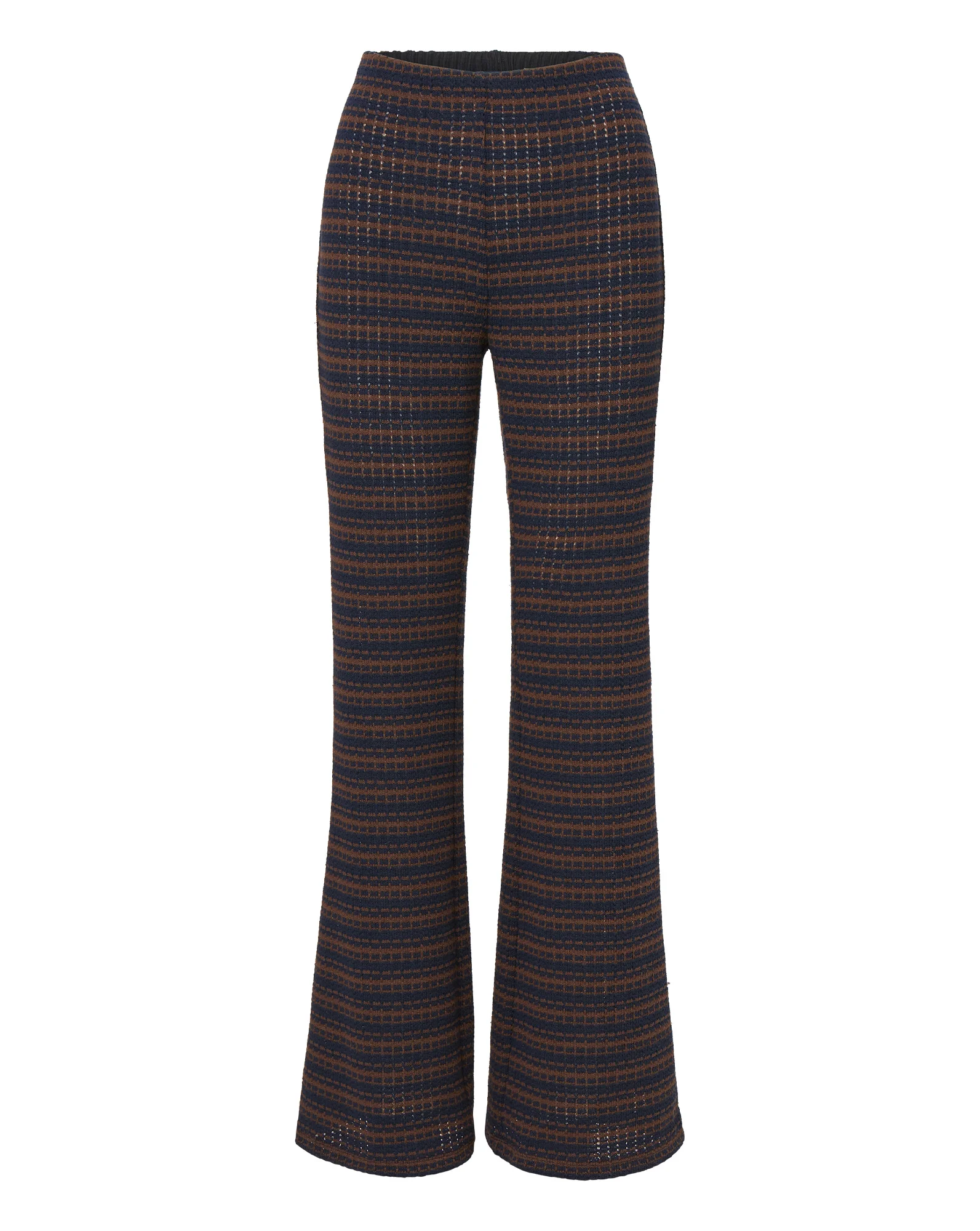 Product details Meet your new go-to off-duty pant. Crafted in a rich navy-and-brown striped knit, the Yadira features a high-waisted, slim fit with a subtle kick-flare silhouette. Designed with pull-on styling for ease, it's perfect for everything from lounging at home to weekend brunch and beyond. Pair with the matching Kamal polo for an easy matching set. - 80% Polyester, 20% Cotton - Dry clean only - Style #J2509JY18860779