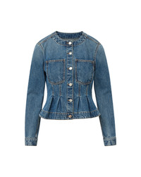 Product details A feminine take on the denim jacket. Crafted from rigid Japanese denim in a classic blue wash, the Zahara is tailored for a waist-defining fit, featuring a slim bodice that flares into a peplum hem below the natural waist. Finished with a clean, collarless neckline, it pairs perfectly with wide-leg denim for a modern take on double denim. - 100% Cotton - Made from premium Japanese denim - Turn inside out. Machine wash cold with like colors. - Style #J25121680168TW