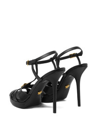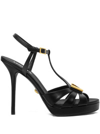 120mm platform sandals Highlights - Black - Leather - T-bar strap - Stiletto heel - Gold-tone v-logo Imported Composition Outer: Calf Leather 100% Lining: Lambskin 100% Sole: Calf Leather 100% SIZE & FIT Measurement HEEL 47.24 in(120 cm)