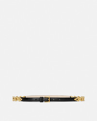 DETAILS This thin belt is crafted from calf leather and enriched with a V hardware incorporated into the belt as a chain - V2025 Chain hardware - Belt loop - Pin buckle closure Outer composition: 100% Calf leather Item: 1018812-DV3T_1B00V SIZE & FIT - Height: 0.8" / 2 cm