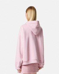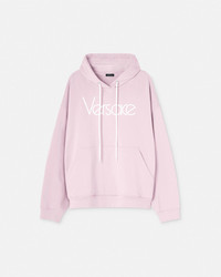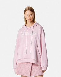 DETAILS A relaxed cotton-jersey hooded sweatshirt featuring a 1978 Re-Edition Logo embroidery at the front. - Versace logo embroidery - Long sleeves - Drawstring hood - Kangaroo pocket - Outer composition: 100% Cotton - Lining: 100% Cotton - Trim: 93% Cotton, 7% Elastane - Fabric made using GOTS-certified organic cotton yarn - Embroidery: 100% Polyester Item: 1014290-1A10157_2P450 SIZE & FIT - The model wears size 38 IT