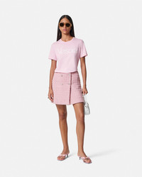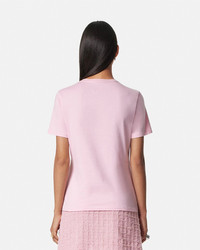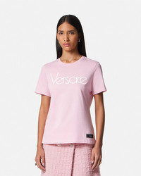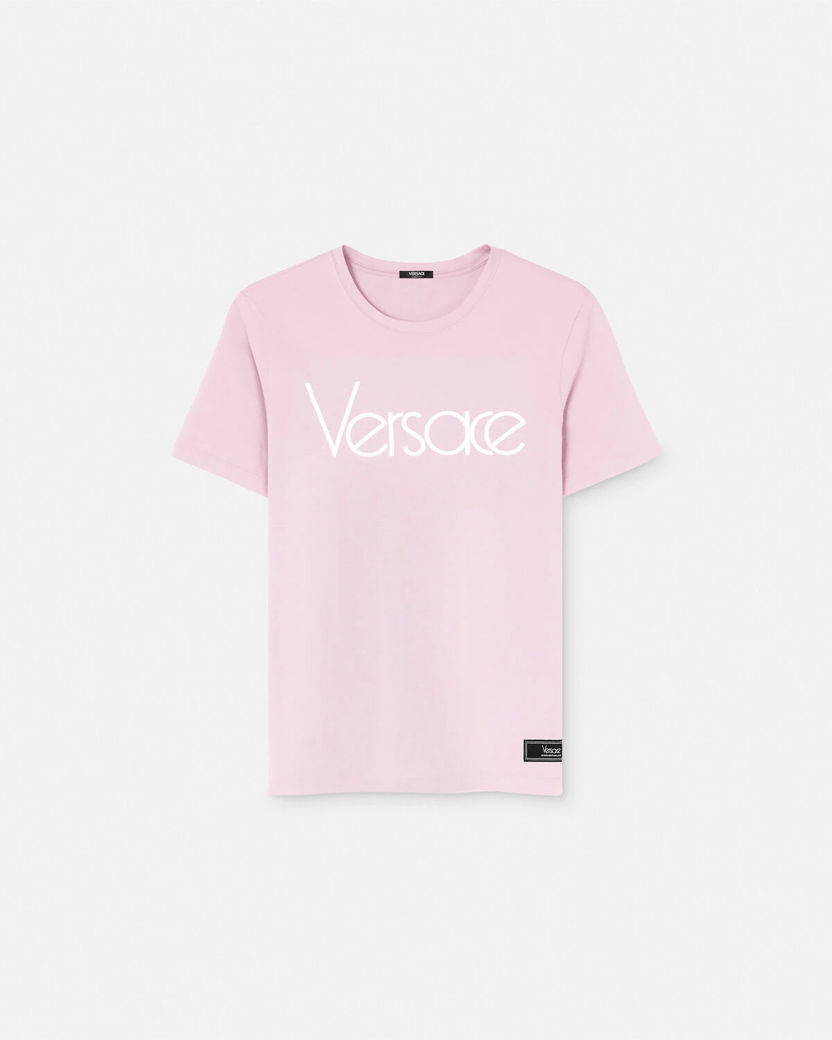 DETAILS A short-sleeved cotton T-shirt featuring a 1978 Re-Edition Logo print at the front. - Versace logo embroidery - Tailoring label - Short sleeves - Crewneck - Outer composition: 100% Cotton - Fabric made using GOTS-certified organic cotton yarn - Embroidery: 100% Polyester Item: 1014273-1A09120_2P450 SIZE & FIT - The model wears size 38 IT