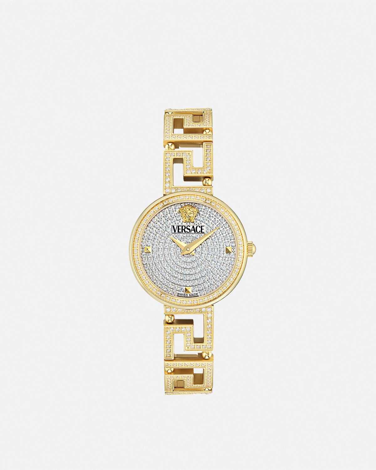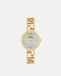 DETAILS Item: - Case: IP2N case - Dial: Full pave diamonds dial with Versace logo and Medusa at 12h - Bracelet: IP2N diamonds bracelet and butterfly buckle - Movement: RONDA 751.3 Swiss Quartz 2-hands movement - Water Resistant: 3 ATM Item: PVE7A005-P0024_RTU_TU_PNUL__ SIZE & FIT - Case: 1.1" / 28 mm