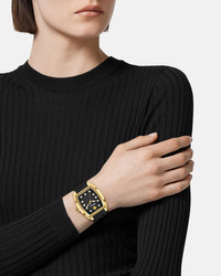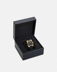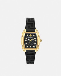 DETAILS Item: - Case: IP2N case with 4 screws on top ring - Dial: Black dial with Versace logo and Medusa at 12h - Bracelet: Black natural rubber strap with embossed Greca and Versace logo and tongue buckle - Movement: RONDA 763 Swiss Quartz 2-hands movement - Water Resistant: 5 ATM Item: PVE8K006-P0024_RTU_TU_PNUL__ SIZE & FIT - Case: L1.8" x H1.4" / L44.8 x H36 mm