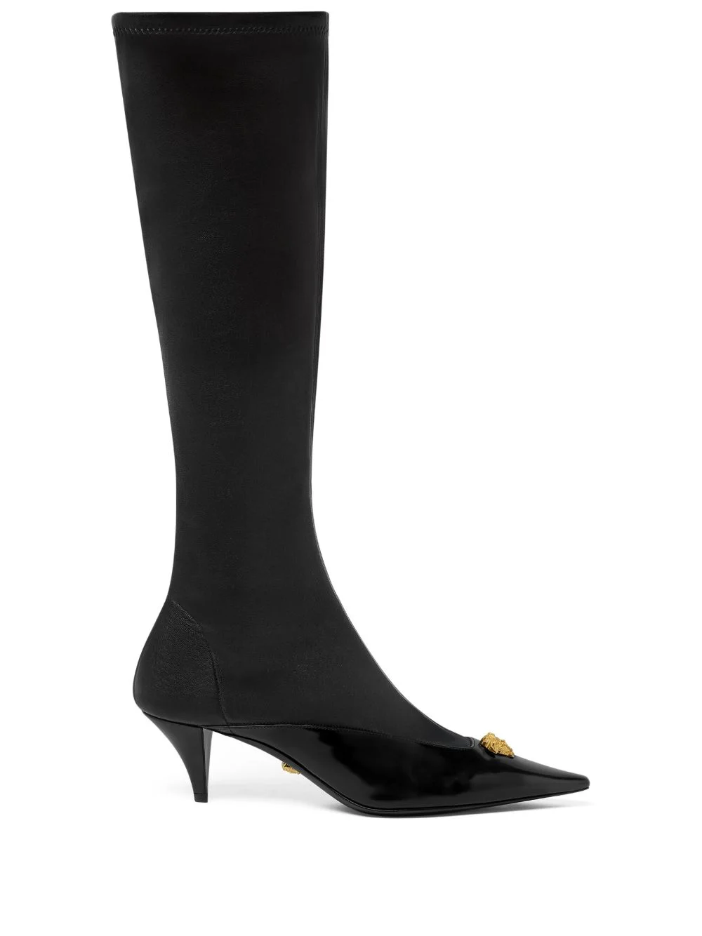 55mm Medusa-applique boots Highlights - Black - Gold-tone hardware - Pointed toe - Medusa applique - Slip on Made in Italy Composition Outer: Lamb Skin 100% Lining: Lamb Skin 100%, Goat Skin 100% Sole: Calf Leather 100% SIZE & FIT Measurement HEEL 2.16 in(5.5 cm)