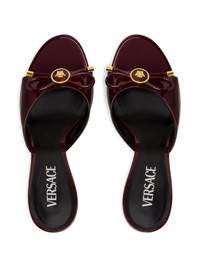 85mm bow-embellished leather sandals Highlights - Burgundy - Patent leather - Stiletto heel - Open toe - Medusa hardware - Bow detail Made in Italy Composition Outer: Calf Leather 100% Lining: Goat Skin 100%, Lamb Skin 100% Sole: Calf Leather 100% SIZE & FIT Measurement HEEL 3.34 in(8.5 cm)