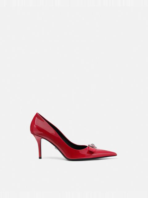 DETAILS Highheeled pumps crafted from patent leather with nastro Gianni bow and Medusa hardware at the front - Medusa '95 hardware - Pointed toe - High heel - Outer composition: 100% Calf leather - Lining 1: 100% Lambskin - Lining 2: 100% Goat leather - Trim: 72% Viscose, 28% Silk - Sole: 100% Calf leather Item: 1013083-1A08983_1RB3P SIZE & FIT - Heel: 3.3" / 8.5 cm