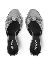 85mm leather mules Highlights - Light grey - Embellishments - Bow detail - Stiletto heel - Open toe - Branded insole Made in Italy Composition Outer: Lambskin 100% Lining: Calf Leather 100% Sole: Calf Leather 100% SIZE & FIT Measurement HEEL 3.34 in(8.5 cm)