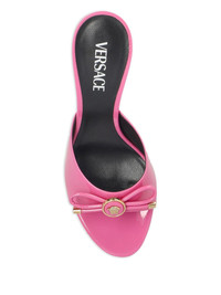 85mm Opera Bow sandals Highlights - Pink - Leather - Patent finish - 85mm high heel - Open toe - Bow detail - Signature medusa head emblem Made in Italy Composition Lining: Calf Leather 100% Outer: Patent Calf Leather 100% Sole: Calf Leather 100% SIZE & FIT Measurement HEEL 3.34 in(8.5 cm)