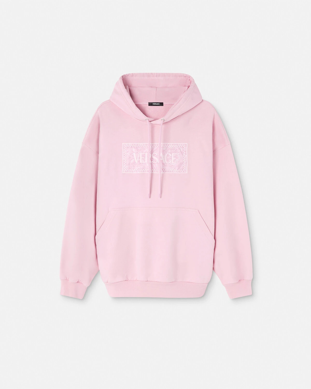 DETAILS A relaxedfit drawstring cottonjersey hooded sweatshirt featuring an embroidered 90s Vintage Logo with a tonal Barocco print at the front - Barocco print - '90s Vintage Logo embroidery - Long sleeves - Drawstring hood - Kangaroo pocket - Elastic cuffs and hem - Outer composition: 100% Cotton - Embroidery: 100% Polyester - Trim 1: 100% Polyester - Trim 2: 100% Cotton Item: 1013597-1A10132_1PR20 SIZE & FIT - All sizes fit Italian standards - The model is 5'10" tall and wears size 38