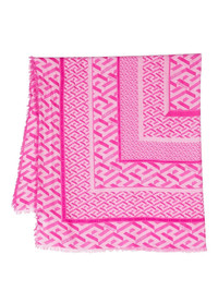 all-over monogram-print scarf fuscia pink silk blend two-tone design monogram pattern print frayed edge Made in Italy Composition Body: Modal 85%, Silk 15% SIZE & FIT Measurement LENGTH 52.75 in(134 cm) WIDTH 40.94 in(104 cm) Washing instructions Dry Clean Only
