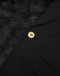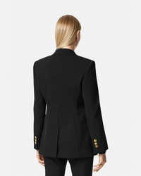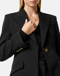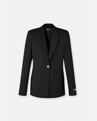 DETAILS Sharp tailored shoulders feature on this singlebreasted blazer with angular side pockets a peaked lapel and a single Medusa button - Tailoring logo - Medusa hardware - Long sleeves - Peaked lapel - Chest welt pocket - Front flap pockets - Buttoned cuffs - Back single vent - Outer composition: 98% Wool, 2% Elastane - Lining: 58% Cupro, 42% Viscose Item: 1009095-1A00905_1B000 SIZE & FIT - The model is 5'8" tall and wears size 38 IT