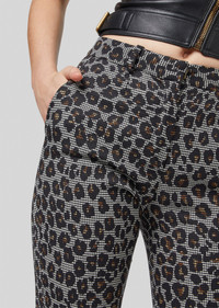 Embodying a uniform of bold color and statement pattern play, these wool blend Houndstooth trousers are embellished with leopard animalier accents. DETAILS & CARE - Houndstooth - Animalier - Side slant pockets - Outer fabric: 95% Virgin wool, 4% Nylon, 1% Elastane - Lining: 59% Viscose, 41% Cupro - Delicate dry clean - Do not wash - Protect accessory before washing - Do not bleach - Do not tumble dry - Cool iron - Made in Italy