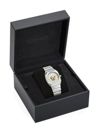Antares Lady 35mm Highlights - Champagne dial - Square case shape - 35mm case size - Medusa head dial feature - Grecca bezel feature - Quartz movement - Water resistance up to 50m/5 atm - This item comes with a standard one-year warranty from the boutique. Imported SIZE & FIT Measurement DIAMETER 1.37 in(3.5 cm) Thickness 0.43 in(1.1 cm)