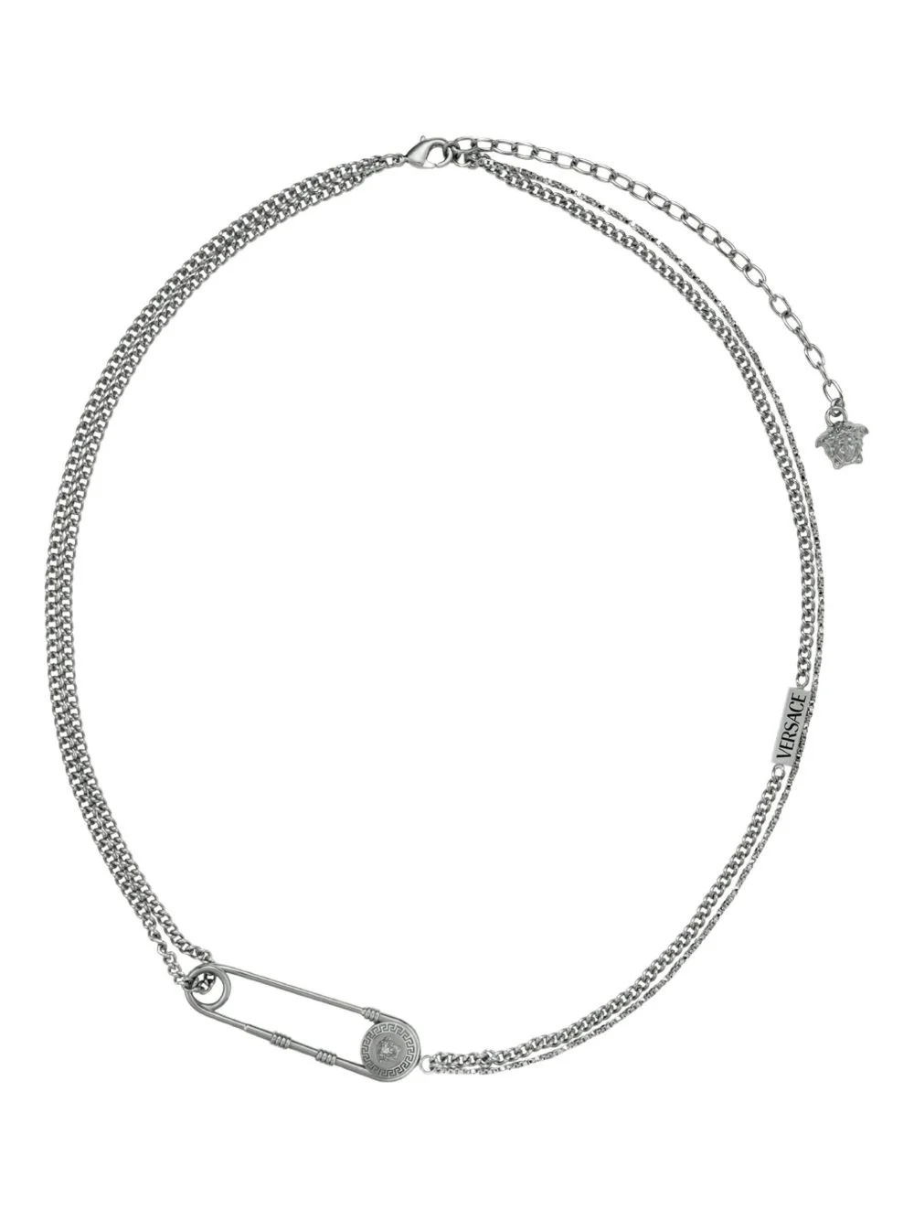 bar-pin embellished necklace Highlights - Silver-tone - Lobster claw fastening - Medusa head motif - Logo plaque Imported