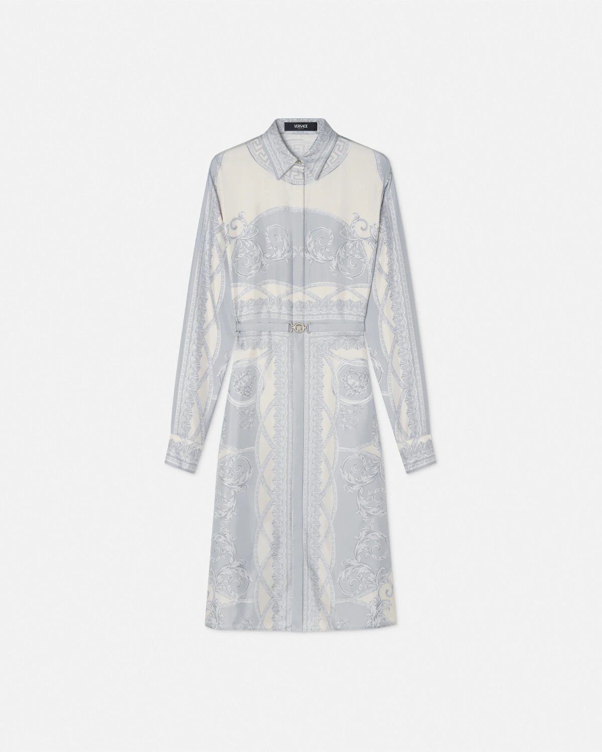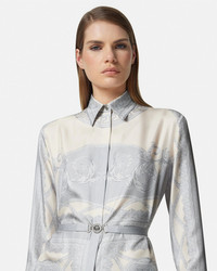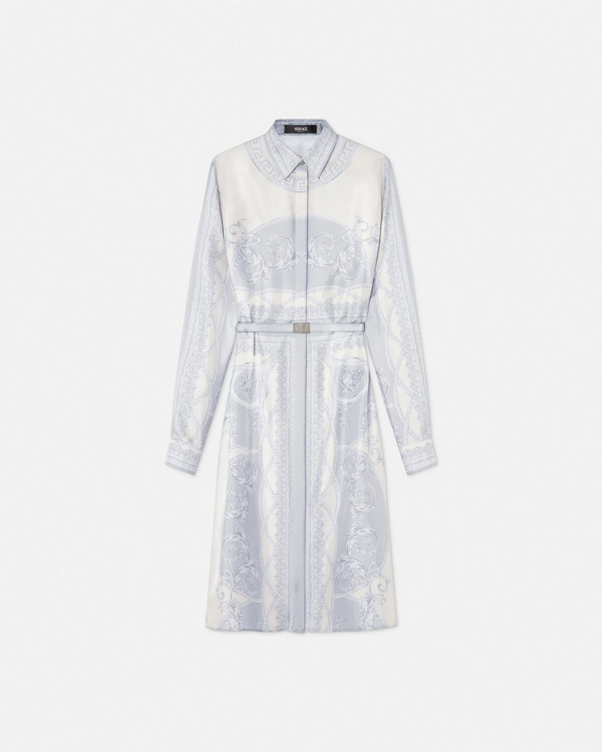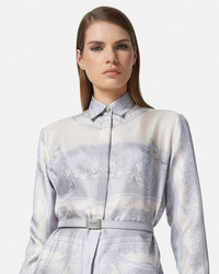 DETAILS This longsleeved midi shirt dress features a silk twill La Coupe des Dieux print with a removable Medusa 95 belt at the waist - La Coupe des Dieux print - Medusa '95 hardware - Long sleeves - Pointed collar - Concealed button placket - Detachable belt - Outer composition: 100% Silk - Trim: 100% Silk Item: 1018622-1A13359_5E450 SIZE & FIT - The model is 5'10" / 1.79 m tall and wears size 38 IT