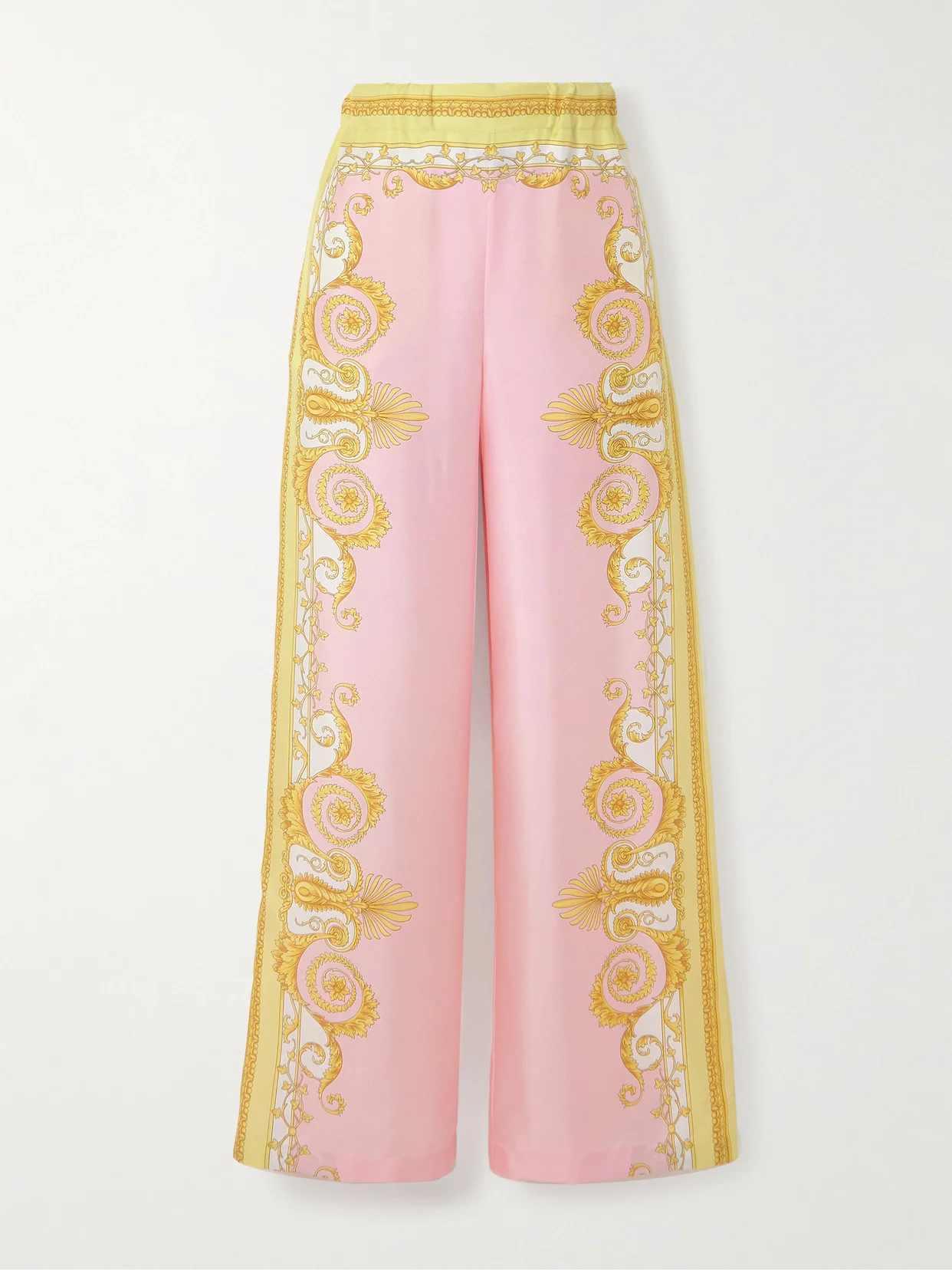 Versace's 'Barocco' print has been a house signature since its debut in the early '90s, embodying the label's opulent aesthetic. These pants are cut from silk-twill patterned with a pink iteration of the motif and fall to fluid, wide legs. Pair them with the coordinating shirt for a bold, statement look.