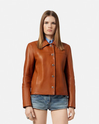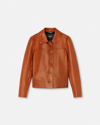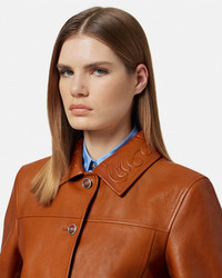 DETAILS This leather blouson jacket is crafted in grained calf leather in a boxy fit The design is accented by a laserembossed Barocco motif along the collar and signature Medusa buttons - Barocco motif - Medusa hardware - Long sleeves - Pointed collar - Front button closure - Side pockets - Outer composition: 100% Calf leather - Lining: 100% Cupro Item: 1019810-1A14112_1O730 SIZE & FIT - The model is 5'10" / 1.79 m tall and wears size 38 IT