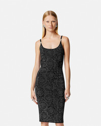 DETAILS A slim-fitting knit midi silhouette with a lurex Barocco pattern throughout. Medusa '95 hardware accents the shoulder straps. - Barocco pattern - Medusa '95 hardware - Sleeveless - Shoulder straps - Scoop neckline - Slip on - Outer composition: 84% Viscose, 7% Nylon, 6% PM, 3% Elastane Item: 1011396-1A10004_1B000 SIZE & FIT - The model is 5'8" tall and wears size 38 IT