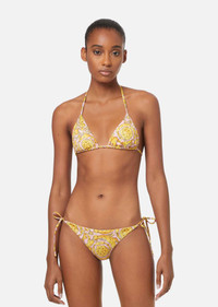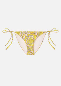 A bold beach or pool style, this statement bikini bottom boasts the iconic Barocco print. DETAILS & CARE - Barocco print - Outer fabric: 78% Polyester 22% Elastane - Lining: 75% Nylon 25% Elastane - Hand wash gently using mild detergent - Do not bleach - Do not tumble dry - Do not iron - Delicate dry clean - Made in Italy SIZE & FIT - All sizes fit Italian standards - The Model is 1,78 m and wears a size 1