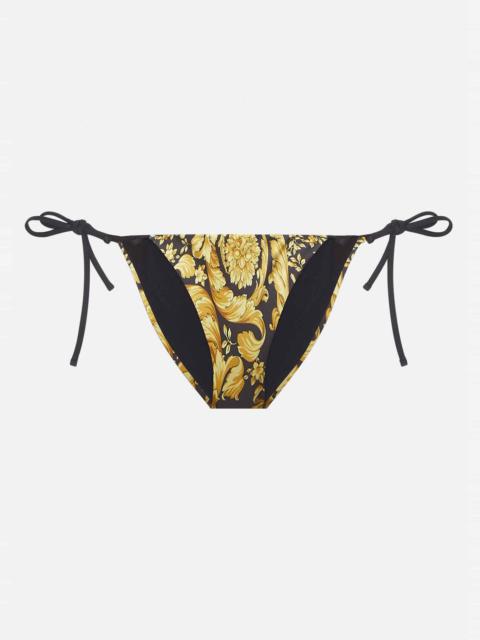 A bold beach or pool style, this statement bikini bottom boasts the iconic Barocco print. DETAILS & CARE - Barocco print - Outer fabric: 78% Polyester 22% Elastane - Lining: 75% Nylon 25% Elastane - Hand wash gently using mild detergent - Do not bleach - Do not tumble dry - Do not iron - Delicate dry clean - Made in Italy SIZE & FIT - All sizes fit Italian standards - The Model is 1,78 m and wears a size 1