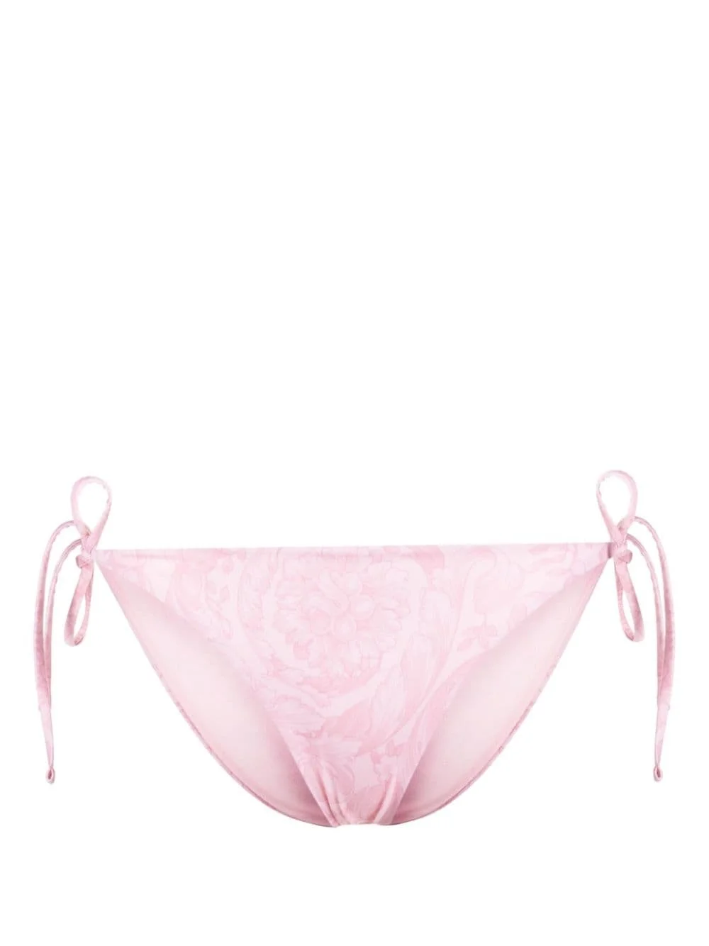 Barocco-print bikini bottom Highlights - Pale pink - Stretch-design - Signature barocco print - Medusa plaque detail to the rear - Side tie fastening - Be mindful to try on swimwear over your own garments. - This item comes with an original authenticity seal. Made in Italy Composition Outer: Polyester 78%, Spandex/Elastane 22% Lining: Flex Polyester 88%, Spandex/Elastane 12% Washing instructions Hand Wash