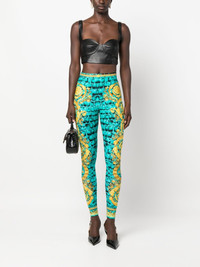 Barocco-print slip-on leggings Highlights - Turquoise blue-green/gold-tone - Stretch-design - Signature barocco print - Slip-on style Composition Polyamide 78%, Elastane 22% SIZE & FIT Model measurements Height 5 ft 9 in(1.76 m) Bust/Chest 32.3 in(82 cm) Hips 34.6 in(88 cm) Waist 23.6 in(60 cm) FittingInformation Designed for a close fit throughout Made from a midweight stretch fabric, this piece offers elasticity and flexibility when worn This piece fits true to size – take your usual size