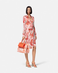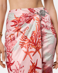 DETAILS A gathered, stretch-jersey midi skirt featuring Barocco elements with coral, seashell, and starfish motifs. The asymmetric style features Medusa '95 hardware on the front wrap panel. - Barocco Sea print - Medusa '95 hardware - Concealed side zip closure - Outer composition: 100% Viscose - Lining: 100% Viscose Item: 1016421-1A11713_5PB50 SIZE & FIT - The model is 5'10" tall and wears size 38 IT