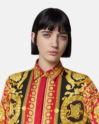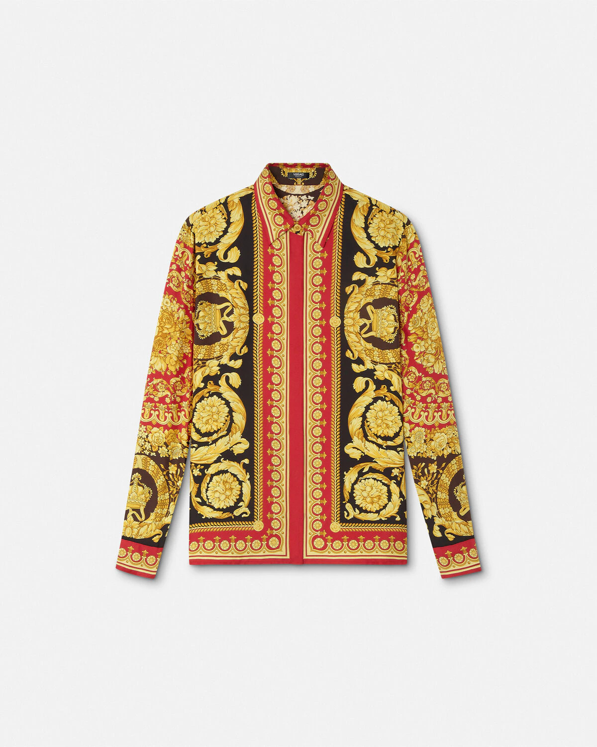 DETAILS This classic longsleeved shirt is made from silk twill featuring the signature Barocco print with an accent Medusa button - Barocco print - Medusa hardware - Long sleeves - Pointed collar - Concealed front button placket - Buttoned cuffs - Outer composition: 100% Silk Item: 1001360-1A15215_5R650 SIZE & FIT - The model is 5'10" / 1.78 m tall and wears size 38 IT
