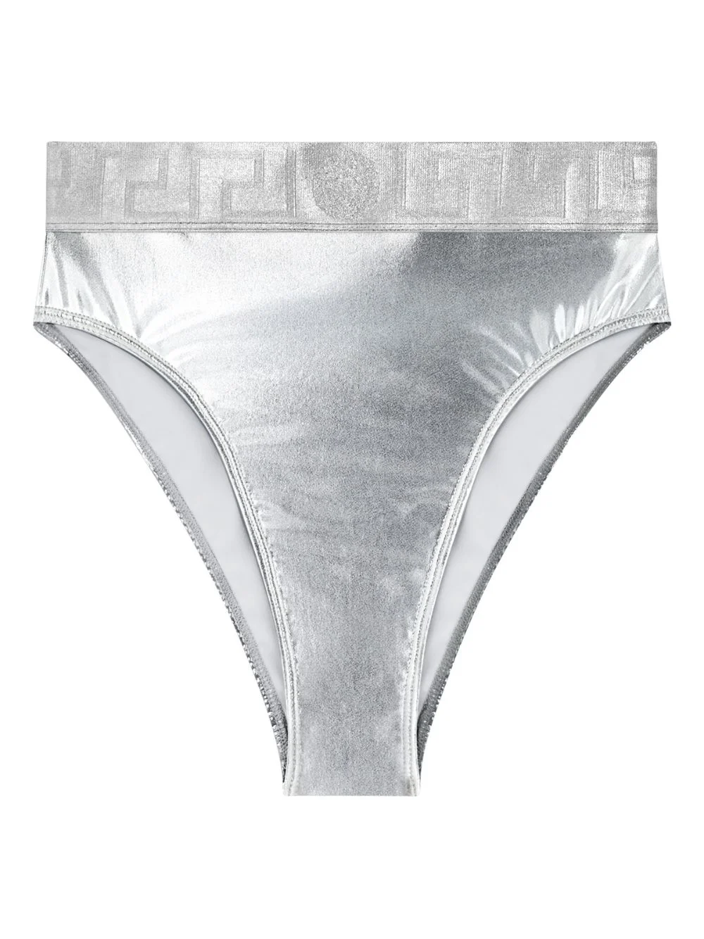 metallic biquini button Highlights - Silver - Metallic finish - Elastic waistband - Be mindful to try on swimwear over your own garments. Imported Composition Outer: Polyester 87%, Spandex/Elastane 13% Lining: Polyester 87%, Spandex/Elastane 13% Washing instructions Read Manufacturer Guidelines