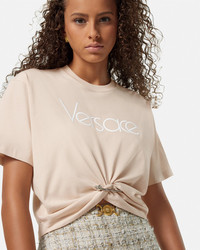 DETAILS A cropped shortsleeved cottonjersey Tshirt featuring a 1978 ReEdition Logo embroidery at the front gathered at the waist by the signature Safety Pin - Safety Pin hardware 1978 Re-Edition Logo embroidery - Short sleeves - Crewneck - Outer composition: 100% Cotton - Embroidery: 100% Polyester - Trim: 98% Cotton, 2% Elastane Item: 1018898-1A13610_2KQ70