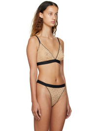 Sheer stretch nylon tulle bra. Scalloped edges and logo pattern woven throughout. · V-neck · Elasticized logo-woven hem · Adjustable elasticized shoulder straps · Adjustable hook-eye fastening at back Supplier color: Nude Body: 93% nylon, 7% elastane. Trim 1: 78% polyester, 11% elastane. Trim 2: 80% polyester, 20% elastane. Made in Italy 222653F073038