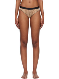Sheer stretch nylon tulle briefs. Scalloped edges and logo graphic pattern woven throughout. · Logo-woven elasticized waistband · Partial jersey lining Supplier color: Beige 93% polyamide, 7% elastane. Made in Italy 222653F074020
