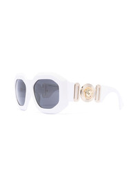 Biggie medusa-logo sunglasses Highlights - White - Metal/acetate - Medusa head motif - Oversize frame - Grey tinted lenses - Straight arms - Curved tips - These glasses come with a protective case. Made in Italy Composition Metal 100%, Acetate 100%, Acrylic 100% SIZE & FIT Measurement Arm Length 5.7 in(14.5 cm) Bridge Width 0.7 in(1.8 cm) Lens Diameter 2.2 in(5.6 cm) Total Width 5.9 in(15 cm)