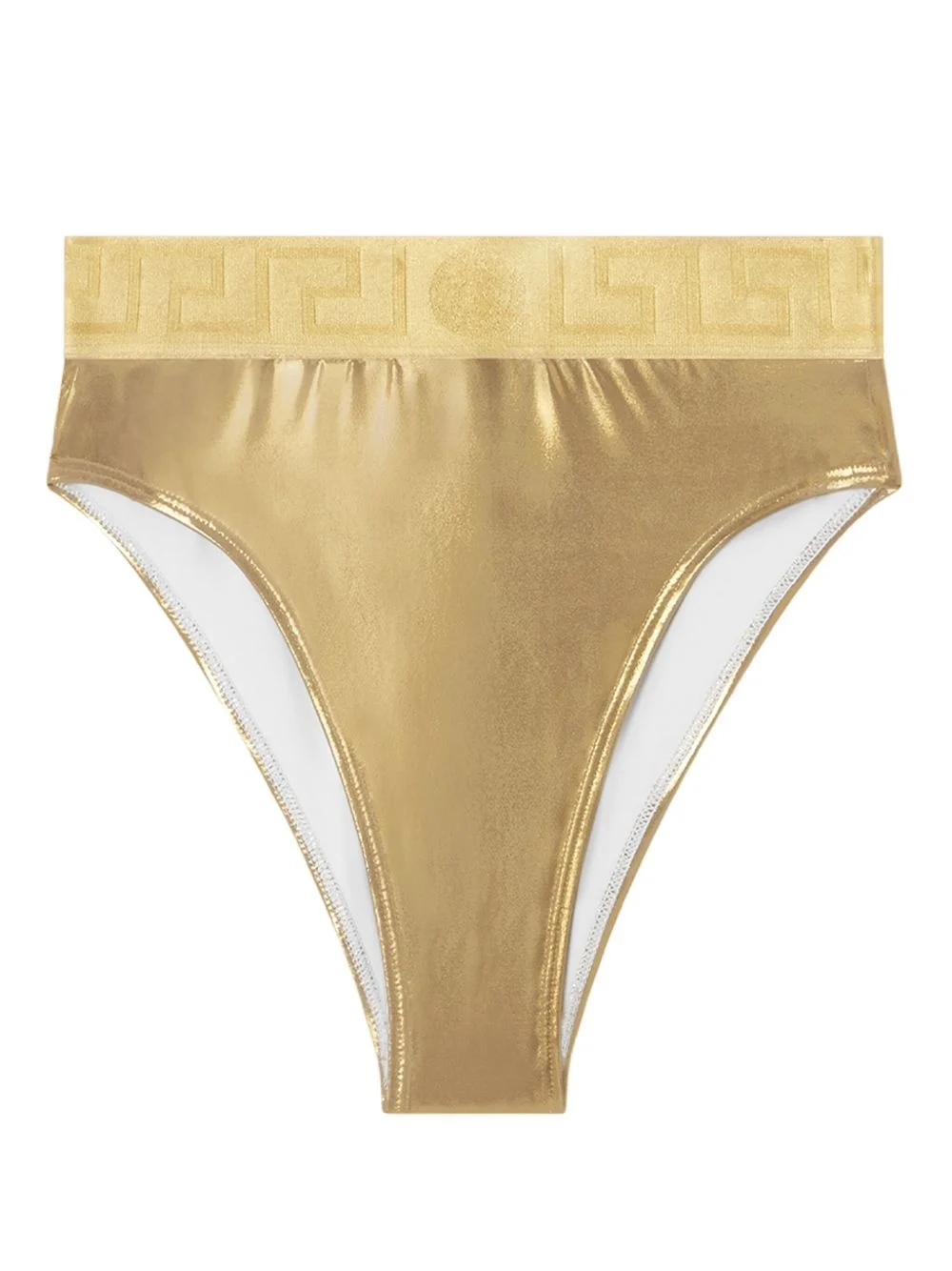 Greca Border metallic bikini bottoms Highlights - Gold-tone - Elasticated waistband - Signature greca detailing - Pull-on style - Be mindful to try on swimwear over your own garments. Imported Composition Polyester 87%, Elastane 13%