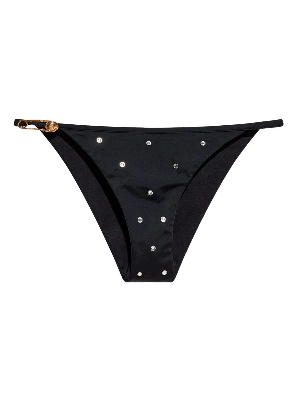 crystal-embellished bikini bottom Highlights - Black - Thong strap - Signature medusa safety pin detail - Crystal embellishment - Be mindful to try on swimwear over your own garments. Made in Italy Composition Nylon 100%
