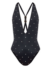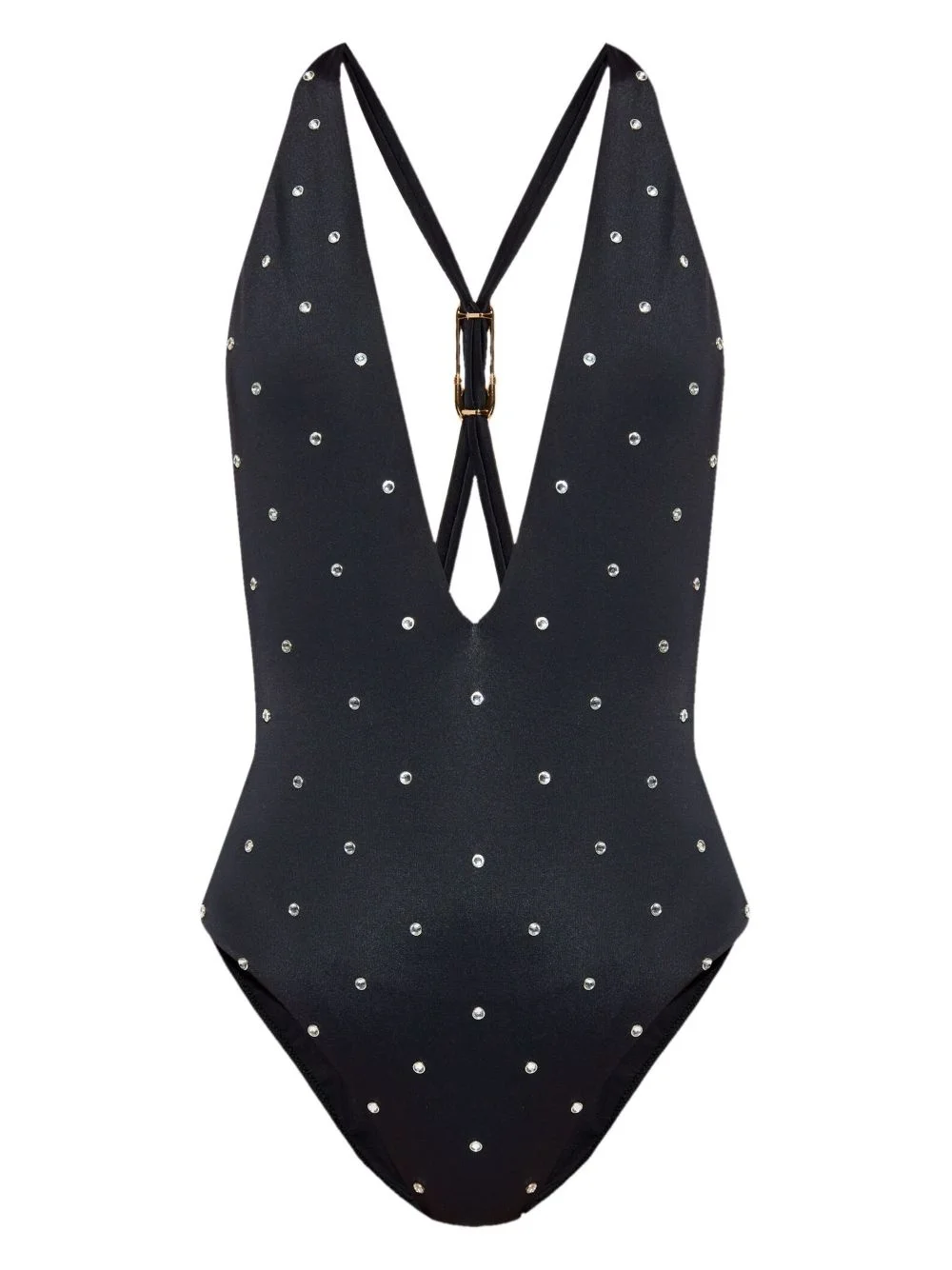 crystal-embellished swimsuit Highlights - Black - Crossover shoulder straps - Signature medusa safety pin detail - Open back - Be mindful to try on swimwear over your own garments. Made in Italy Composition Nylon 100%