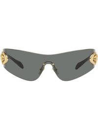 Shield-style rimless metal- and acetate-frame sunglasses. · Gray lens · 100% UVA/UVB protection, category 3 · Adjustable rubber nose pads · Logo hardware and cutout at temples · Includes case · Size: 125 Supplier color: Black Metal, acetate. Made in Italy 252404F005007