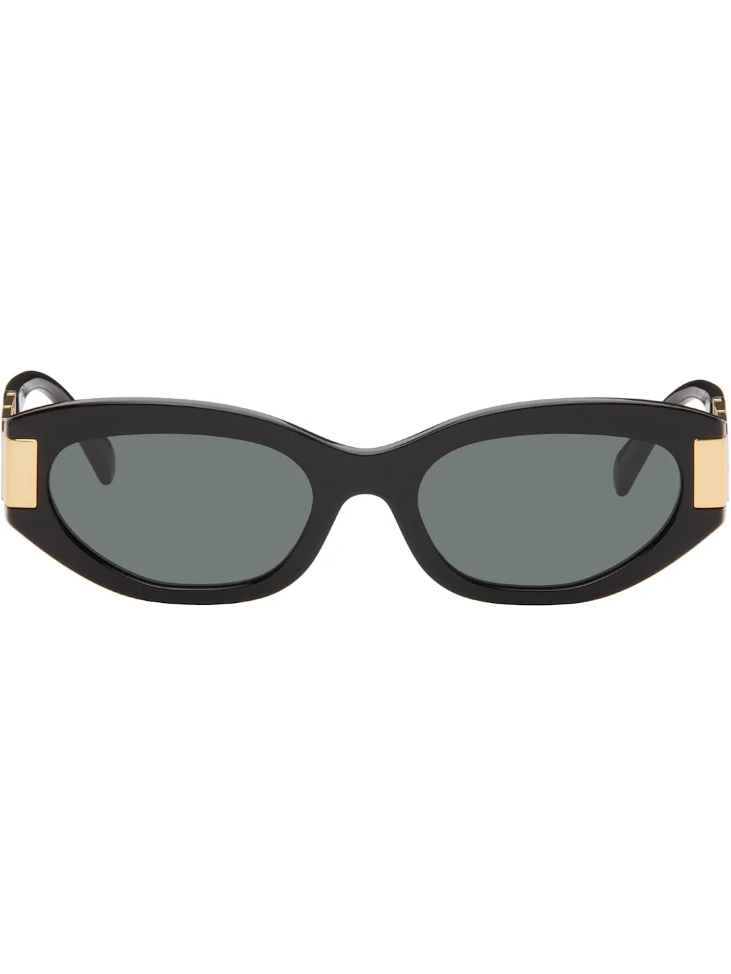 Cat-eye acetate-frame sunglasses. · Gray lenses · Integrated nose pads · Greek key hardware at temples · Includes case · Size: 54.19 145 Supplier color: Black Acetate. Made in Italy 261404F005014