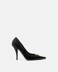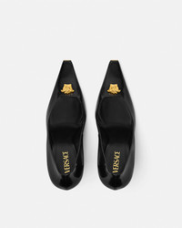 These calf leather pumps are set on a stiletto heel and feature the signature La Medusa hardware on the uppers. The style is detailed by a metal tip with an engraved Versace Logo on the pointed toe. - La Medusa hardware - Versace Logo engraving - Pointed toe - Stiletto heel - Outer Composition: 100% Calf Leather - Lining: 100% Goat Leather - Sole: 100% Calf Leather Size & Fit - The shoe weighs approximately 10.5 oz / 0.3 kg for the model size 40 IT - Footbed: regular - Fits true to size, take your normal size Item: 1020467-1A14835_1B00V