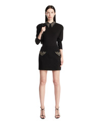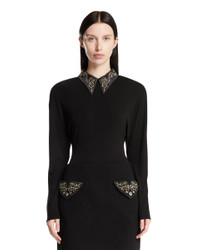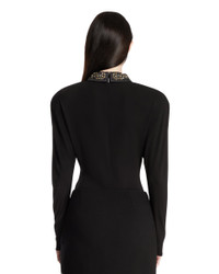 Versace Black Long-Sleeve Bodysuit. Black viscose blend, long sleeves, stud details on the pointed collar. Defined padded shoulders, back zip closure, fitted silhouette. Janne is 179 cm and she is wearing size 40. DETAILS Model: 10216341A144751B000 Composition: 95% Viscose, 5% Elastane; Details: 100% Brass Made in: ITALY Season: FW25-26
