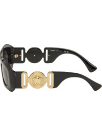 Rectangular acetate-frame sunglasses. · Gray lenses · 100% UVA/UVB protection, category 3 · Integrated nose pads · Logo hardware and cutouts at temples · Includes case · Size: 53.18 145 Supplier color: Black Acetate. Made in Italy 261404F005002