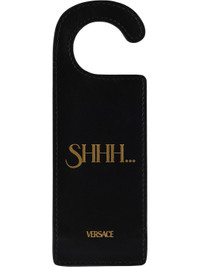 Buffed leather door hanger in black. - Text stamp at face and back face - Medusa horsebit hardware at face - Logo stamp at back face - H7.75 x W2.75 Supplier color: Black