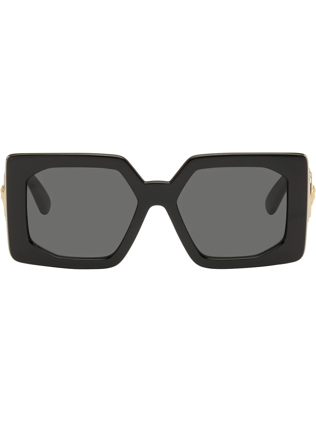 Square acetate-frame sunglasses. · Gray lenses · 100% UVA/UVB protection, category 3 · Integrated nose pads · Fluted logo hardware at temples · Includes case · Size: 55.17 140 Supplier color: Black Acetate. Made in Italy 261404F005004