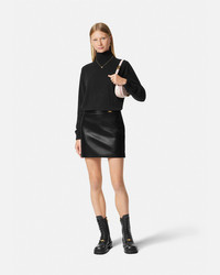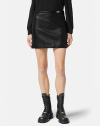 DETAILS A fully-lined leather mini skirt with an accent Medusa '95 hardware at the waist—a version of the House Medusa, first debuted in a '90s Atelier Versace campaign starring Madonna. - Medusa 95 hardware - Back zip closure - Outer composition: 100% Lambskin - Lining: 100% Cupro Item: 1011414-1A08403_1B000 SIZE & FIT - The model wears size 38 IT